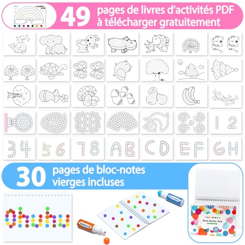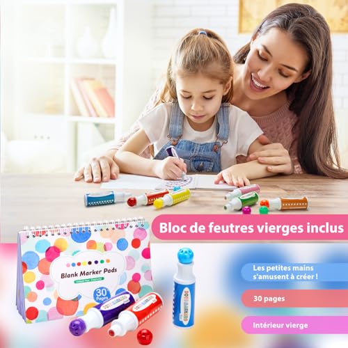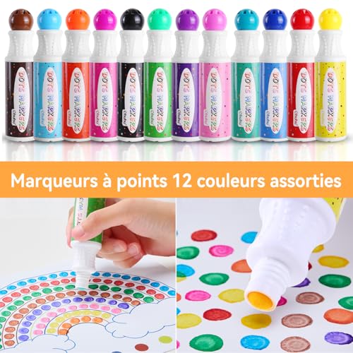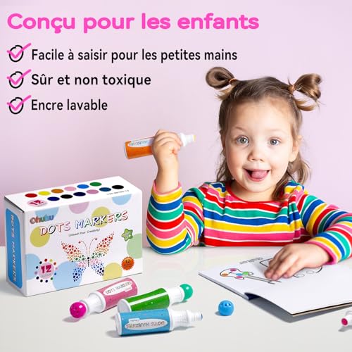 Ohuhu Marqueurs de 12 Couleurs Non Toxiques pour Enfants 3 Ans+, Activités Préscolaires, Feutres Enfant Lavables, 30 Pag